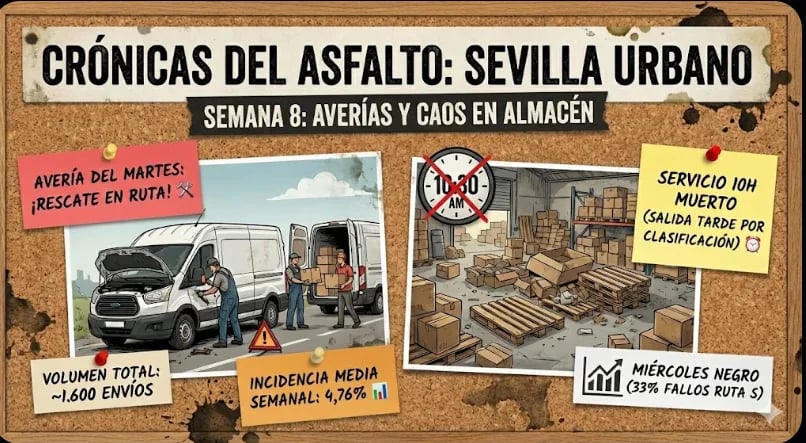 Una semana de locos: rescatamos una ruta con dos chóferes en una furgoneta tras una avería y explicamos por qué salir a las 10:30 por culpa del almacén destroza el servicio urgente (aunque el Excel diga que es culpa nuestra)